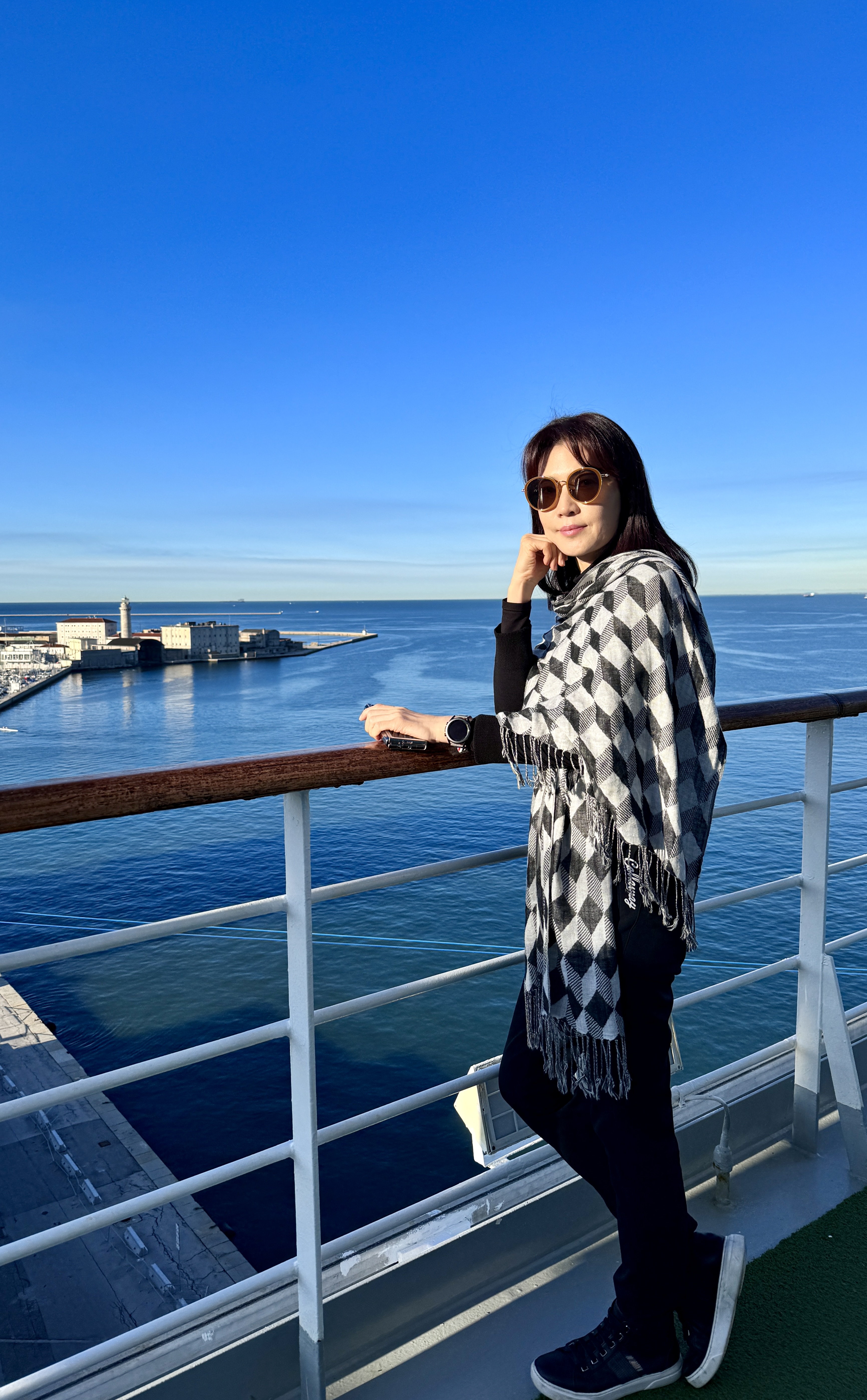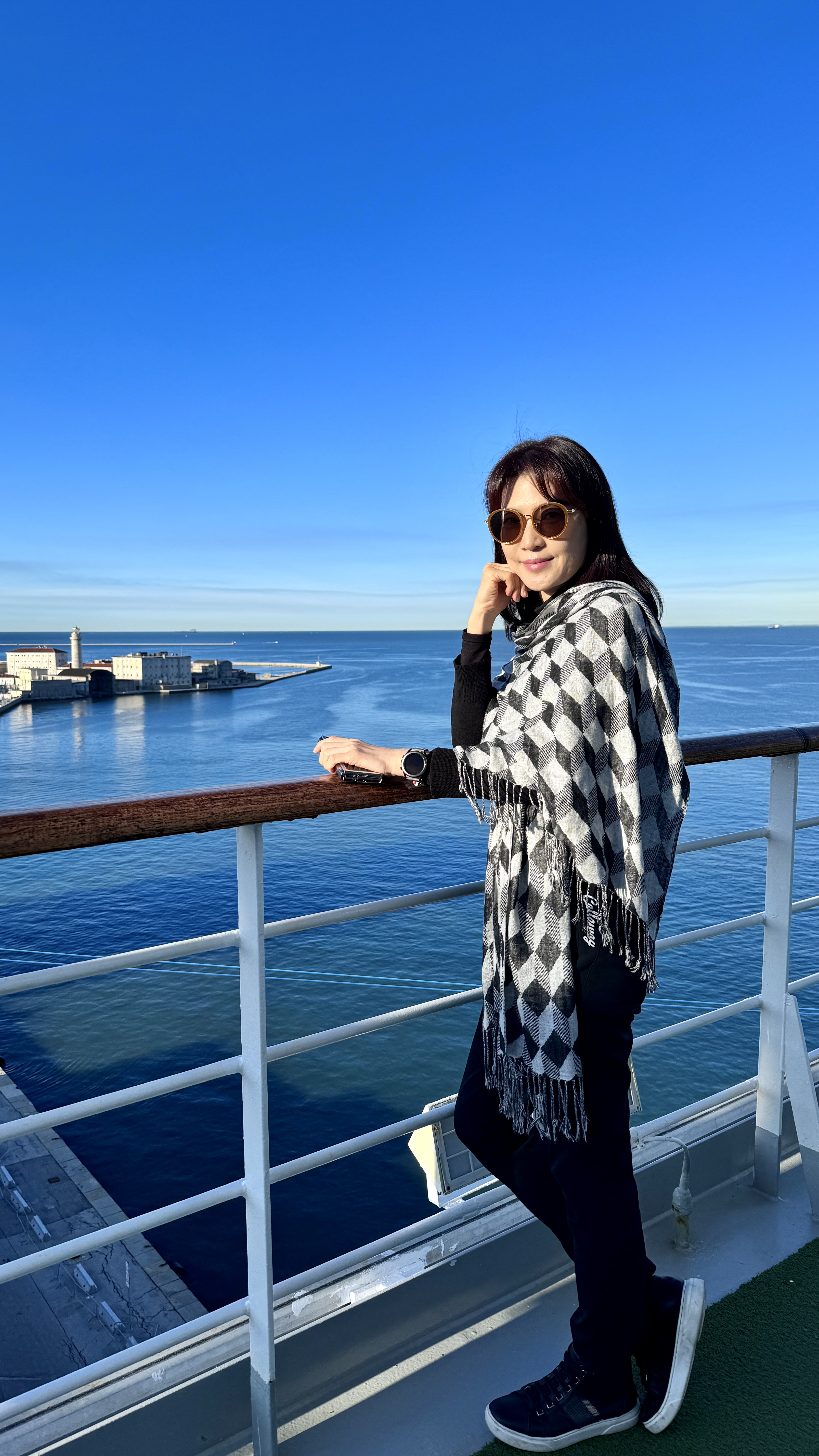 이제 곧 크루즈 하선해서 옥상에서 막간의 사진 촬영을 좀 했다.